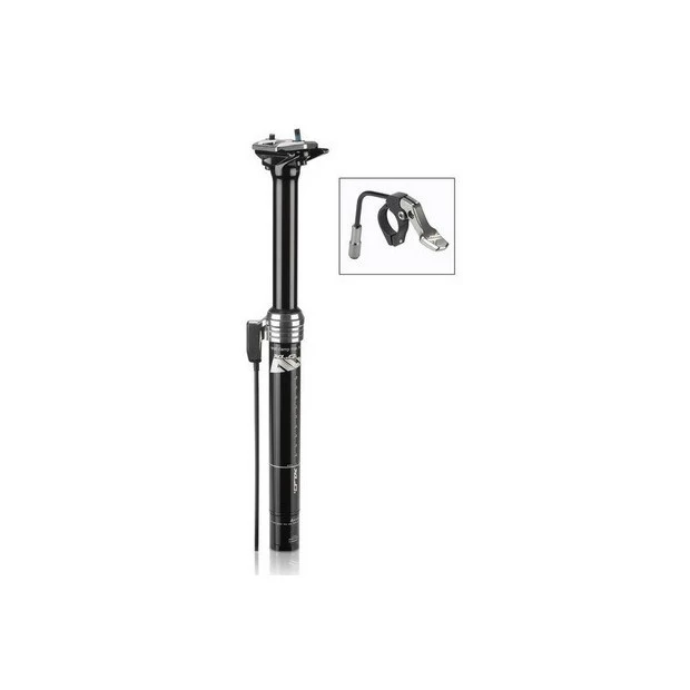 La tige de selle télescopique XLC SP-T10 a été spécialement conçu pour le VTT All Mountain. Fabriquée en aluminium 6061-T6, elle allie résistance et légèreté. Sa commande au guidon avec passage de câble interne permet de monter ou de baisser la selle à votre guise. Les anneaux de serrage supérieur et inférieur sont fraisés CNC. Cette tige de selle utilise une cartouche air-huile pour la fonctionnalité et une tête brevetée monobloc « Low Profile » pour des hauteurs de montage plus faibles. Le recul de 0 mm vous permet de vous asseoir au-dessus du pédalier pour une puissance maximale lorsque vous pédalez fort.